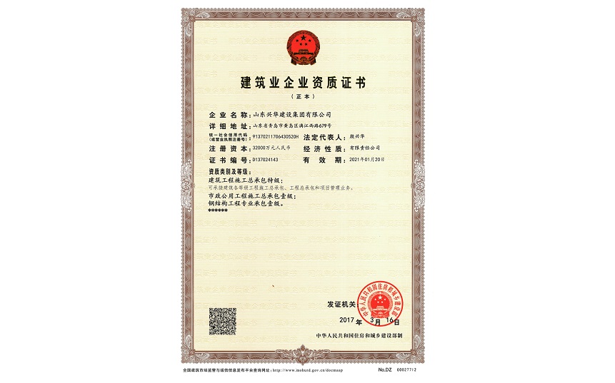 集團作為青島西海岸新區(qū)首家擁有建筑工程施工總承包特級資質(zhì)及工程設計建筑行業(yè)甲級資質(zhì)的企業(yè),同時具備房地產(chǎn)開發(fā)、市政公用工程施工總承包、鋼結構工程專業(yè)承包、地基基礎工程專業(yè)承包、建筑機電安裝工程專業(yè)承包等五項國家壹級資質(zhì),以及建筑幕墻工程等多項專業(yè)承包資質(zhì)。多年來,集團榮獲全國優(yōu)秀施工企業(yè)、全國用戶滿意施工企業(yè)、全國質(zhì)量管理先進單位、山東省百強民營企業(yè)、山東省誠信守法民營企業(yè)、青島市百強企業(yè)等百余項榮譽稱號。