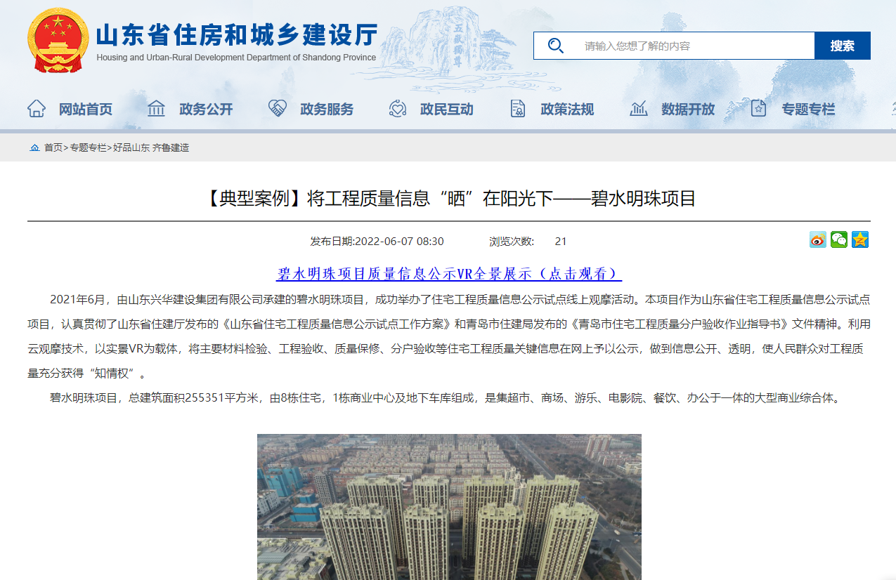 碧水明珠項目被省住建廳官方網站宣傳報道